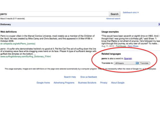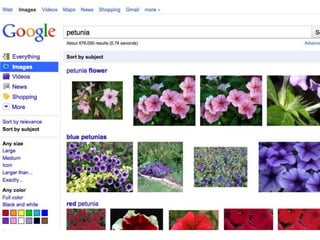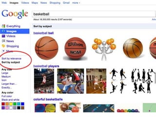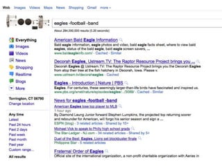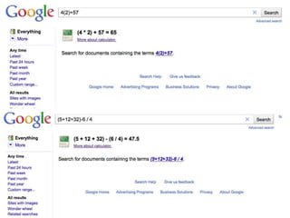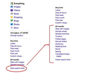The document discusses various techniques for improving online searches, including: