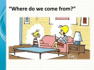 The document discusses the relationship between science, religion, and Google. It asks questions about the origins of the universe and inventions. It argues that deep study of science can lead one to believe in God as creation implies a creator and laws imply a lawmaker. The document then lists reasons why Google is not God, such as Google being ephemeral, in flux, impersonal, and not providing real knowledge. It closes by asking about qualities of different relationships like knowledge, intimacy, and strength.