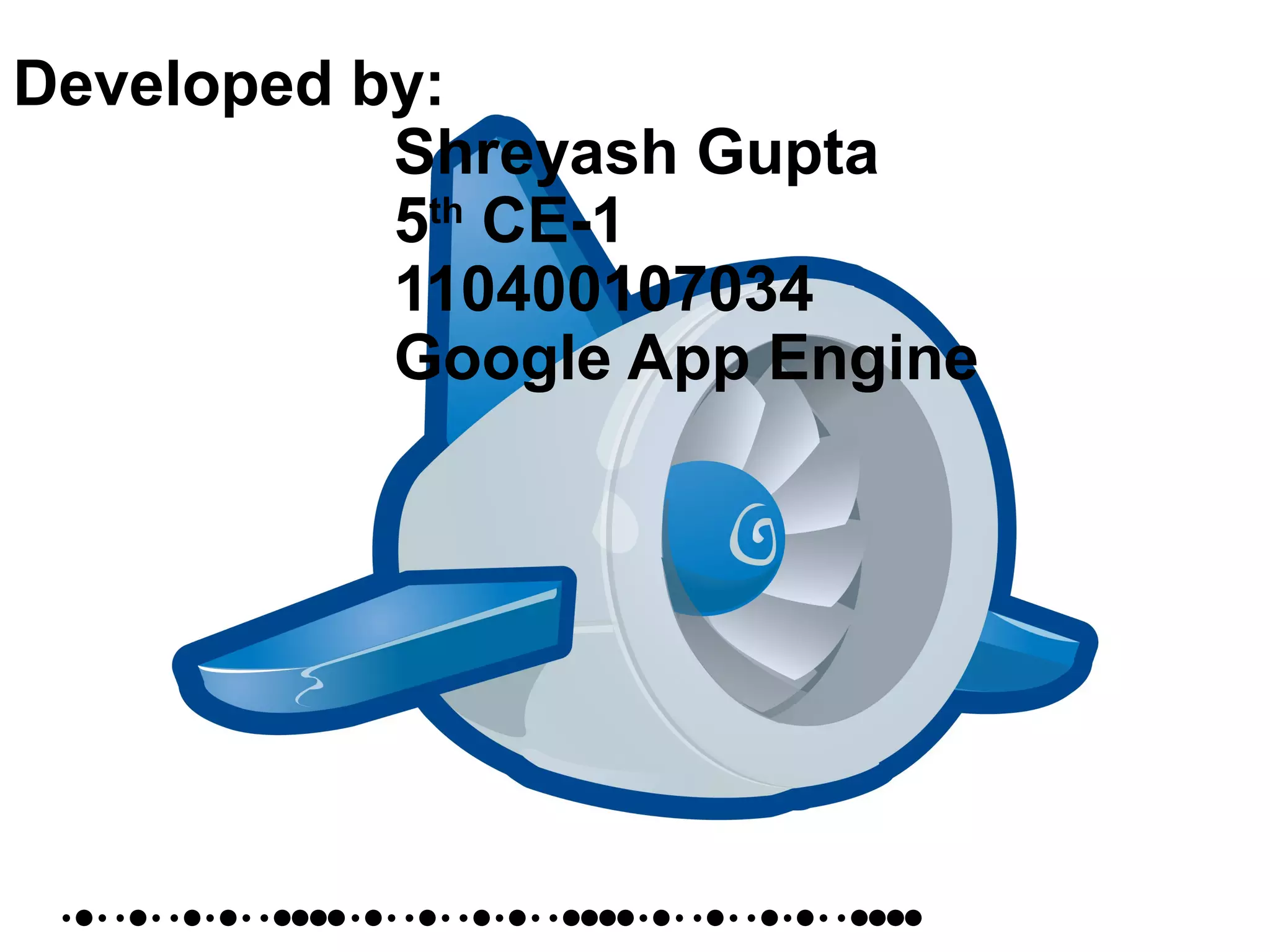 Google App Engine allows users to develop and host web applications on Google's servers. It provides an integrated development environment called Eclipse to write applications using Java, Python or other languages. The application code and files are packaged and deployed to Google's servers. When requests come in, the web.xml file maps URLs to servlet classes which handle the requests. The appengine-web.xml file provides configuration details like the application ID. Applications can be tested locally and then deployed to the cloud with a single click from within Eclipse. Once deployed, applications are accessible via a URL based on the registered application ID.