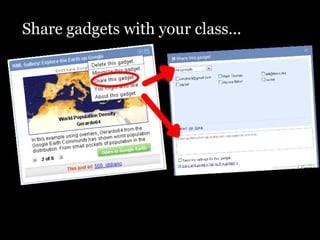 This document summarizes some of the Google tools that are useful for educators, including Google Docs, Blogger, Google Calendar, Google Earth, and iGoogle. It notes that Google Apps are free, accessible from any web browser, and allow for organization, communication, and collaboration. Google Docs specifically is highlighted as being easy to use for uploading existing documents, sharing and collaborating on files simultaneously, exporting files, and creating forms for gathering data.