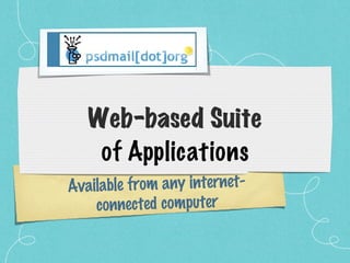 ![Applications include: email ( [email_address] ) calendar word processor spreadsheet presentation](https://image.slidesharecdn.com/googlewscreenshots-090225115816-phpapp01/85/Google-Assembly-Presentation-0708-3-320.jpg)