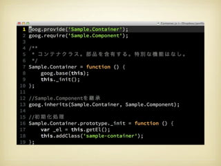 • JavaScriptで手軽にクラスベース風の継承機能 を提供 • require的な各ファイルの依存関係を解決して くれるPythonベースのツール •