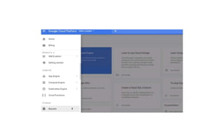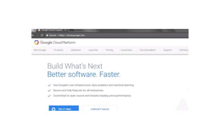 Google Cloud Platform provides cloud computing services such as compute power, database storage, applications, and other IT services via remote servers accessed over the internet. It launched services starting in 2008 and has grown to include compute engine, storage, networking, databases, machine learning, and more. Pricing is based on usage with free tiers and discounts for heavy usage to reduce costs compared to maintaining own hardware.