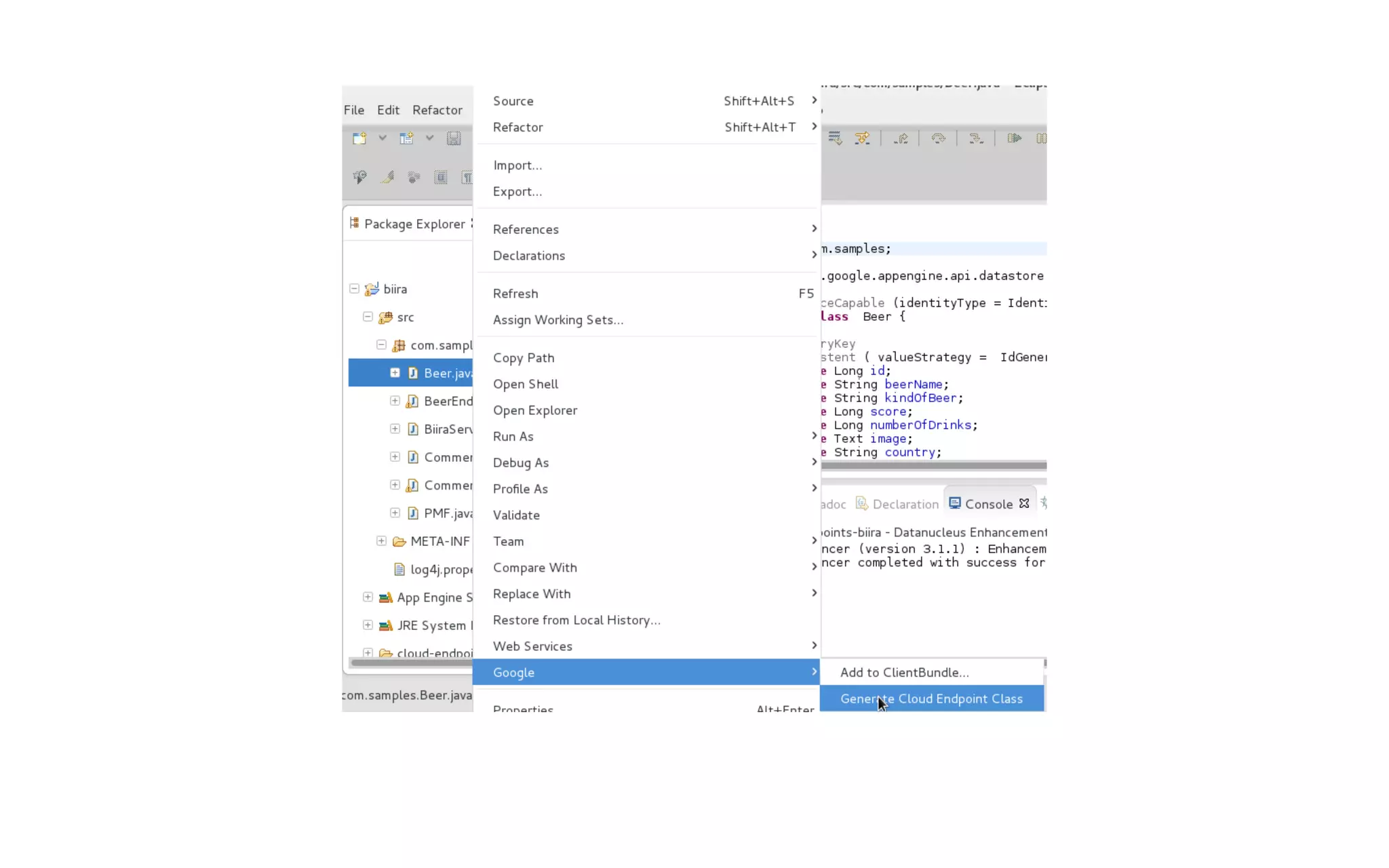 The document provides an overview of Google Cloud Endpoints, detailing its architecture and how it facilitates the creation of APIs for web and mobile clients. It discusses Java Data Objects (JDO) for persistence and includes code examples for managing a beer database through RESTful APIs. Additionally, it outlines commands for interacting with these endpoints and offers links to tutorials and resources for further learning.