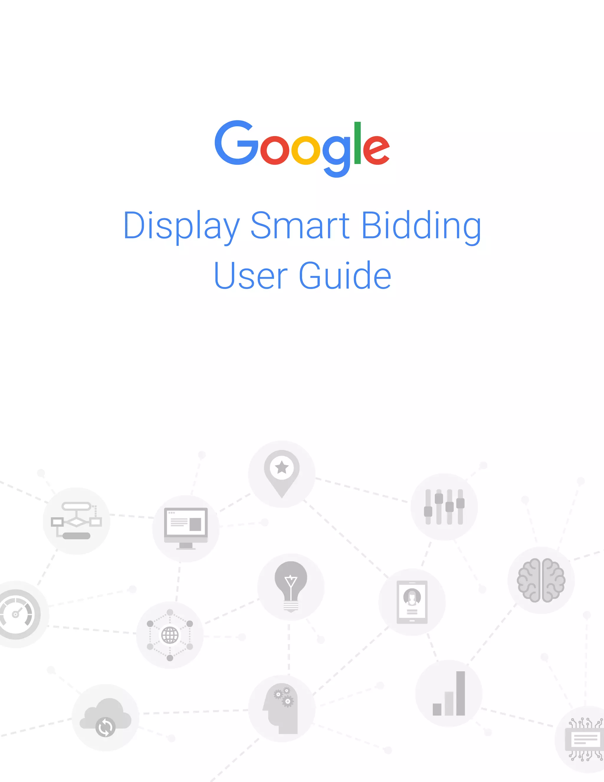 This document provides a guide to using Display Smart Bidding in Google Ads. It covers setting up Smart Bidding campaigns, managing them over time, and assessing results. Key aspects include properly setting up conversion tracking, using the appropriate bidding strategies of ECPC, Target CPA or Target ROAS, allowing for an initial learning period, and avoiding over-segmenting ad groups which can hinder performance. The algorithm aims to maximize conversions or return on ad spend based on billions of data signals.