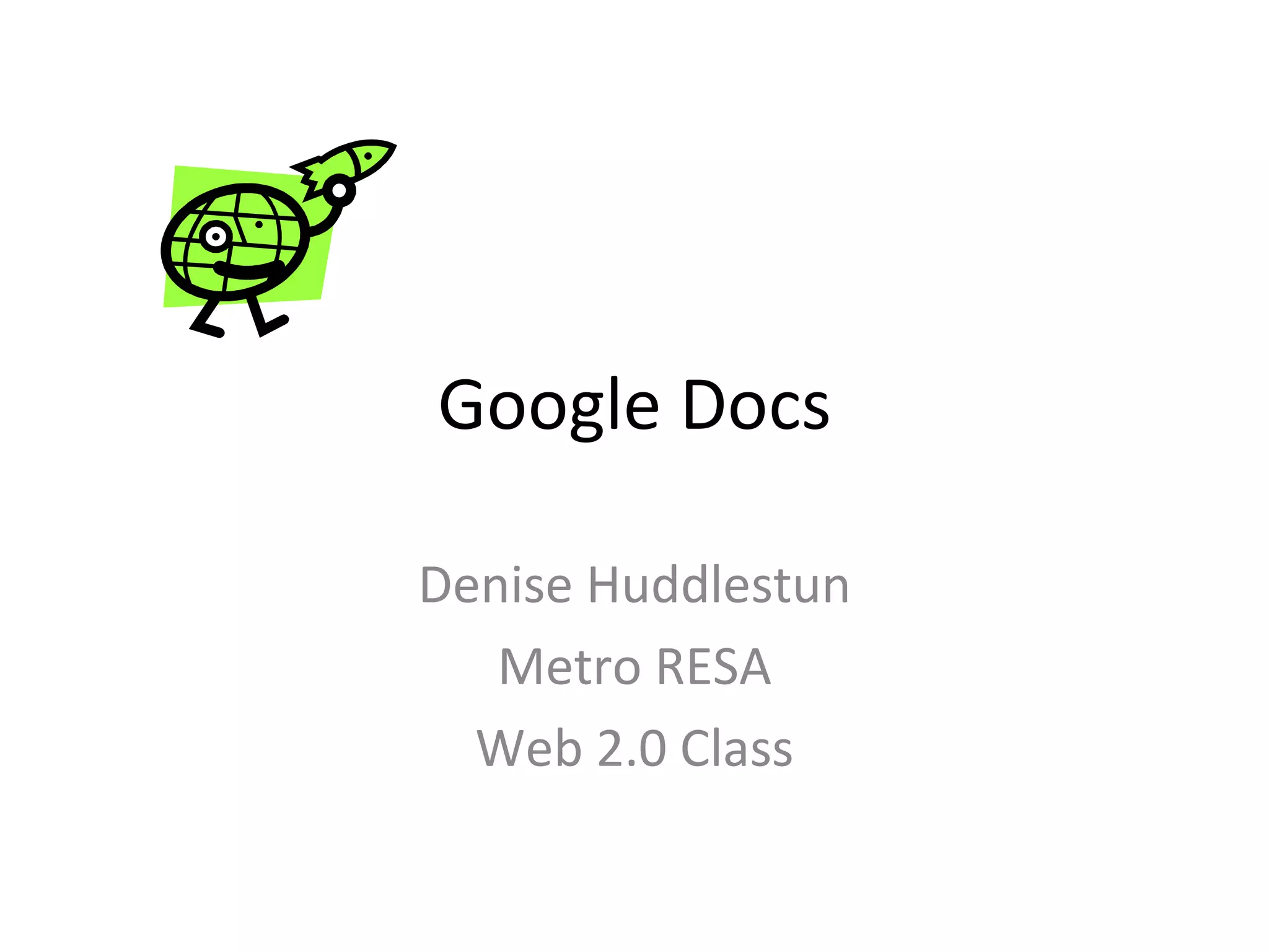 Google Docs allows users to create, view, share, and collaborate on documents. Documents can be created or uploaded to Google Docs and viewed by anyone or only invited individuals. Users can share documents for presentations and collaborate on documents from remote locations. Documents are safely stored and accessed from Google Docs rather than a laptop that could crash.