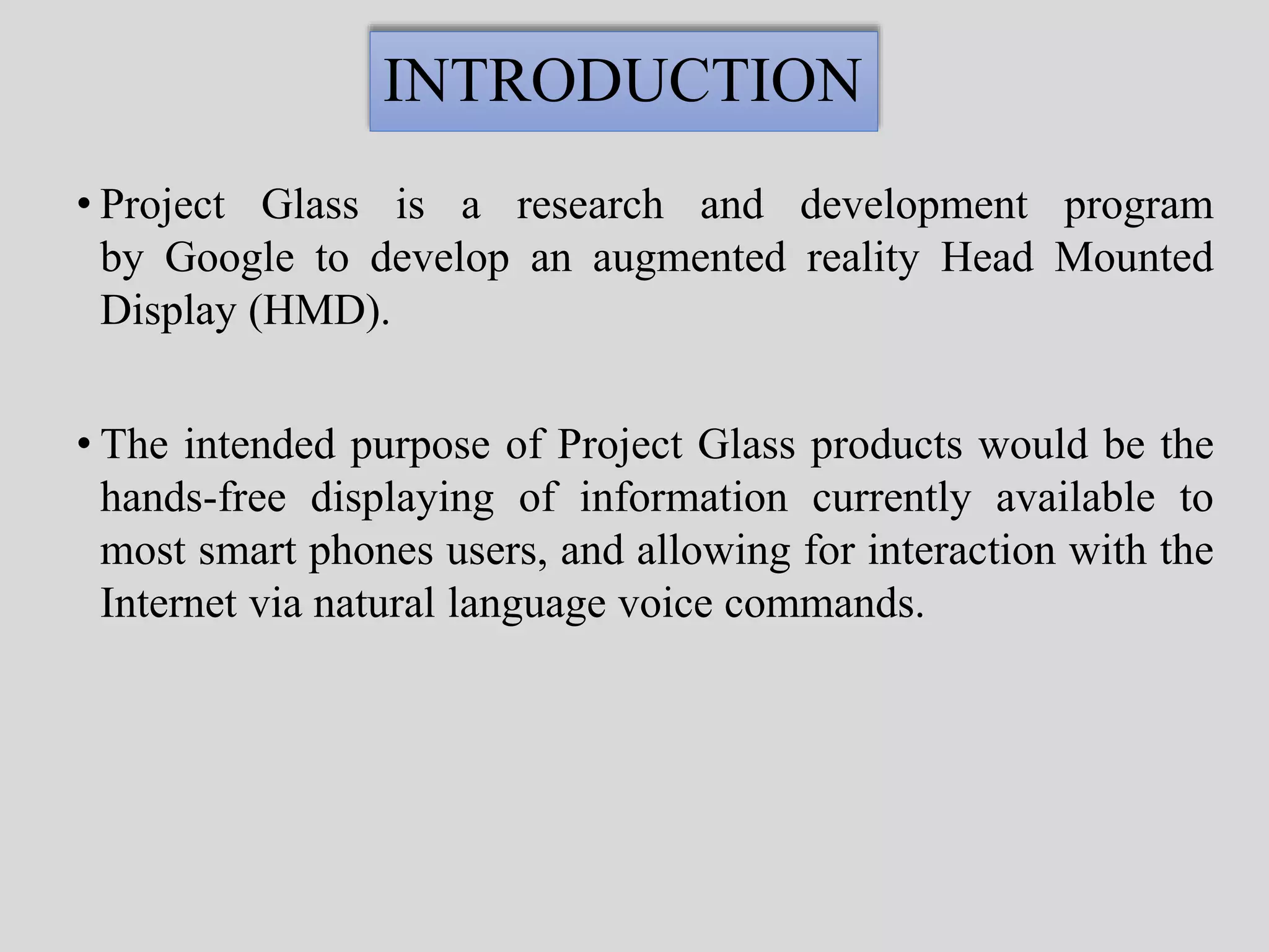 Google's Project Glass is an augmented reality head-mounted display aimed at hands-free information access and interaction through voice commands. Developed by Google X Lab, it incorporates various technologies such as wearable computing, ambient intelligence, and smart clothing, and features components like a video display, camera, and microphone. While it offers benefits like ease of use and fast access to information, it raises privacy concerns and has limitations such as battery life and usage location.
