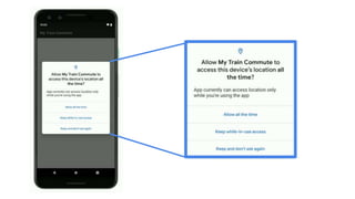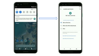 - Changes in Android Q like the new navigation system, scoped storage, location permissions, settings panel actions, and dark mode