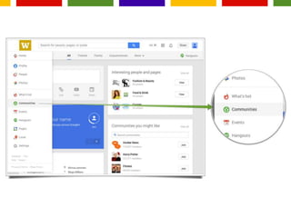 Google+ aims to transform users' relationship with Google by making the Google experience more social, interesting and personalized. While it has social networking aspects like profiles and circles, Google+ differs from networks like Facebook in that it focuses on exploring new interests and learning rather than just connecting with existing friends. For businesses, Google+ provides benefits like improved search engine rankings, integration with key Google services, and new ways to engage customers through features like hangouts and communities. The document provides strategies for businesses to make the most of Google+ for networking, content sharing, and search engine optimization.