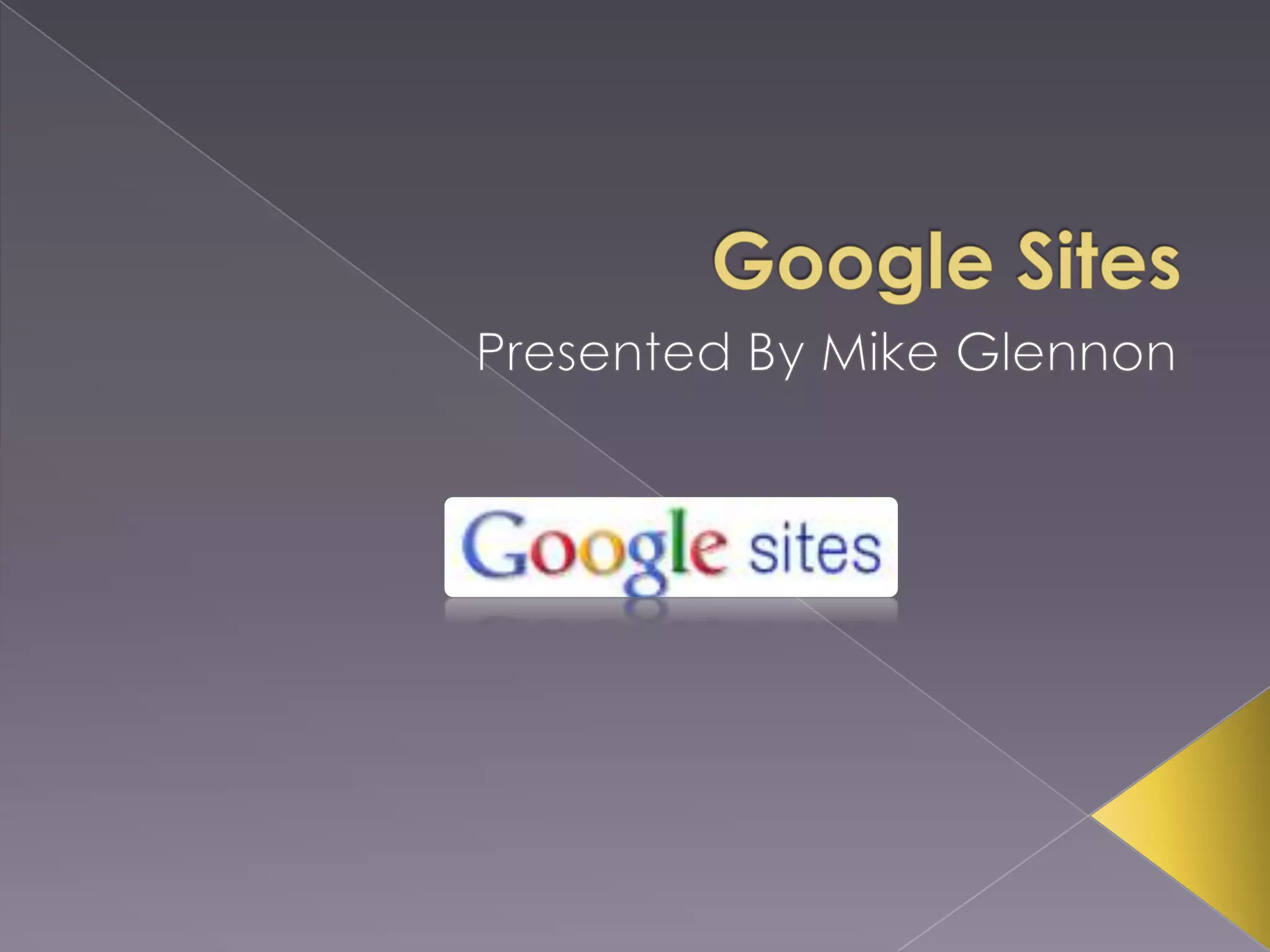 This document provides an overview of using Google Sites to create a website. It explains how to set up a Google Sites account and create a new blank site. It then outlines the various page editing and formatting tools available in Google Sites, such as inserting images, links, headings, and tables. It also covers customizing the site navigation bar and designing the overall site layout and colors. The document encourages attendees to visit the presenter's website for additional tech tips and resources on using Google Sites.