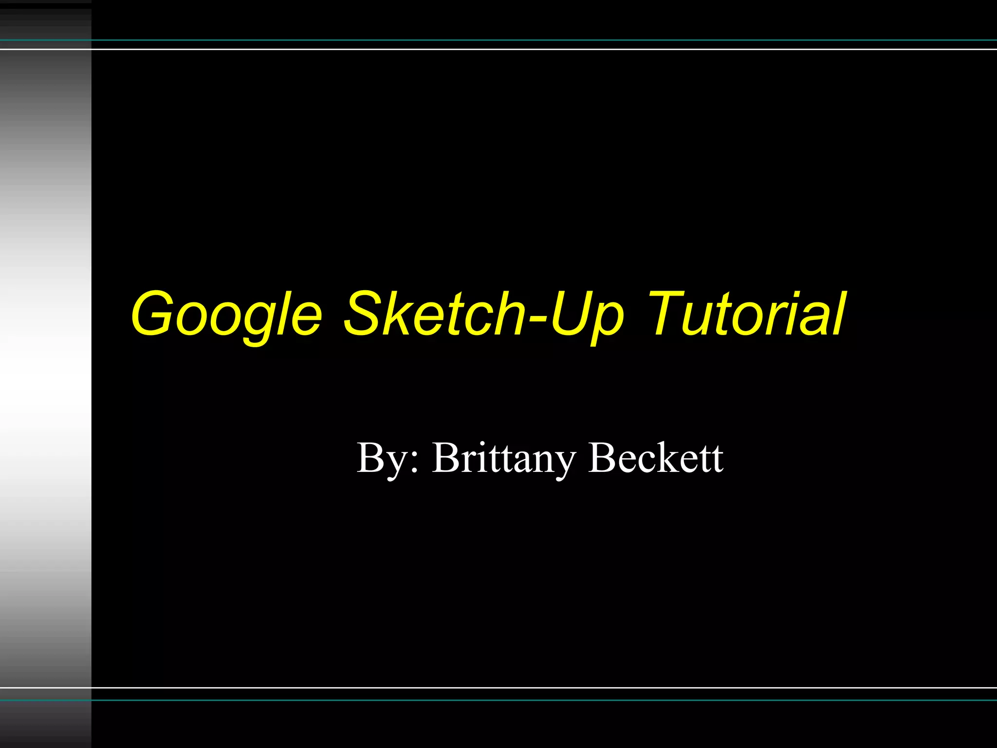 This document provides instructions for creating a 3D cube with text labels in Google SketchUp. It outlines downloading and opening SketchUp, using the rectangle, push/pull, scale, 3D text and orbit tools to first make a square, extrude it into a cube, and then add and size text to each side. The summary provides a step-by-step process for making a basic 3D modeled cube with labeling in SketchUp.