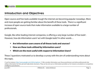 1) A survey of 466 information professionals found that Google Search is the most widely used and important Google tool, while tools like Google Moderator are rarely used or unknown.