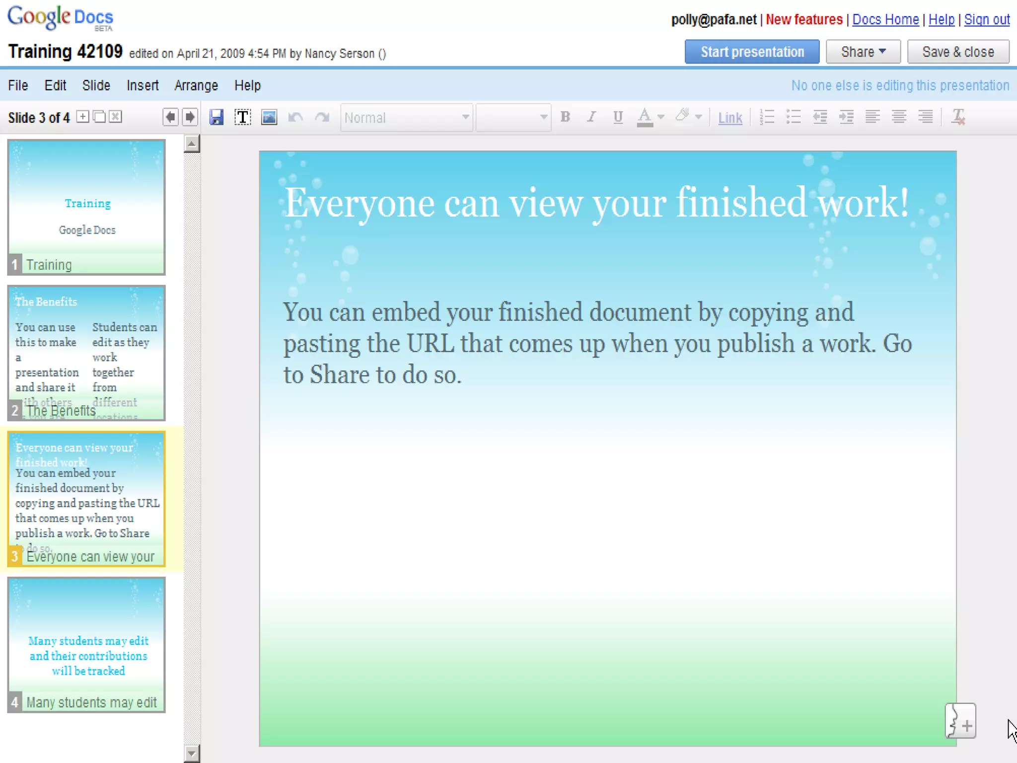 The document provides an overview of many Google tools that can be used for education, including setting up Google accounts, searching with Google, using Google images, trends, books and news, creating documents and sites with Google docs and sites, sharing photos with Picasa, exploring maps on Google Maps and Earth, blogging on Blogger, and sharing ideas on Google Groups. It encourages sharing feedback and questions at the end.