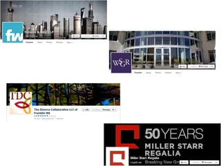 The document discusses the competition between Google and Facebook, highlighting their contrasting business models and strategies for user engagement. While Google focuses on search and advertisement revenue, Facebook prioritizes social connections and targeted advertising based on user interactions. It also notes how companies, including media outlets and law firms, are adapting their social media strategies to effectively engage with audiences on Facebook.