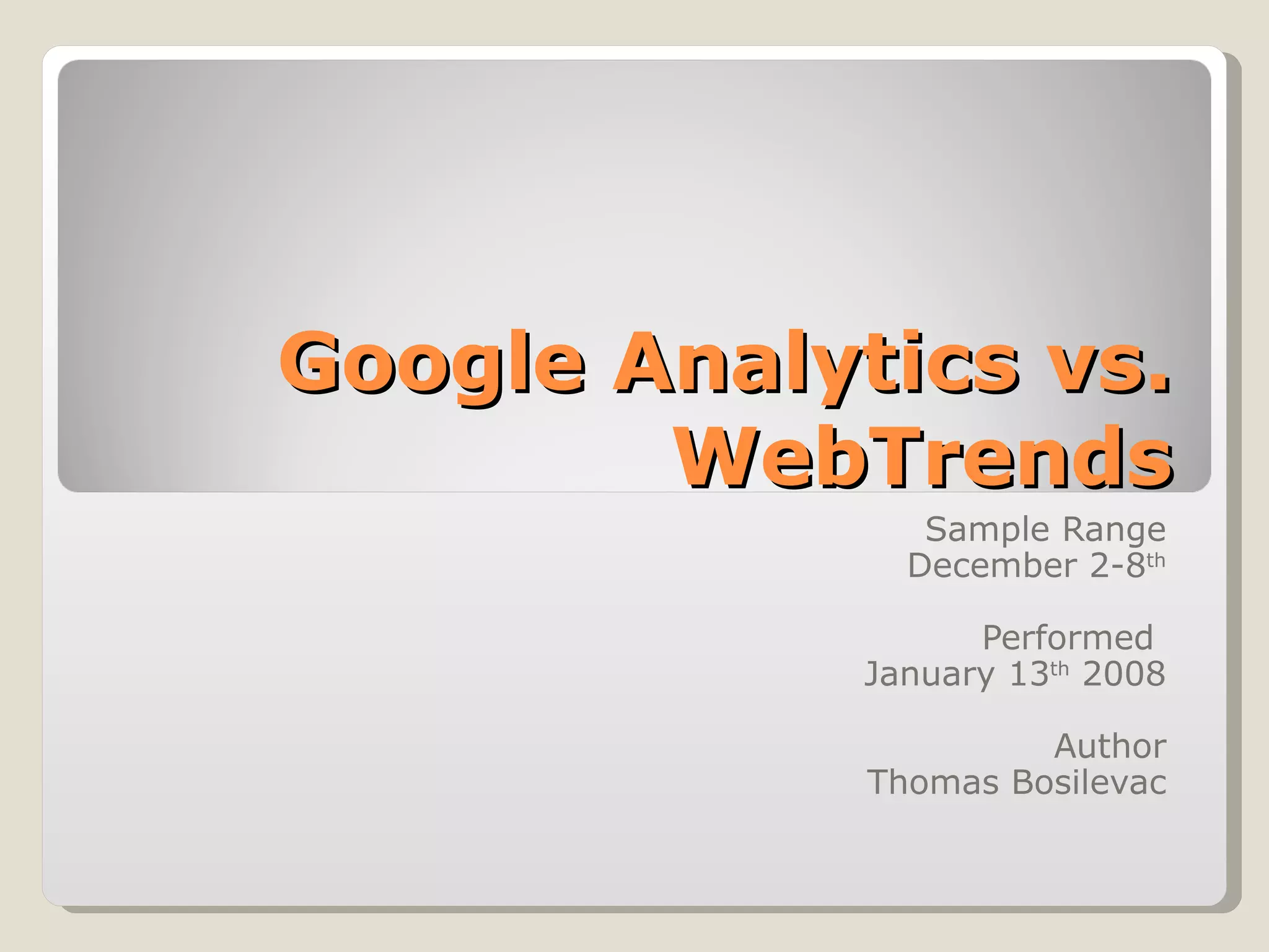 The report analyzes discrepancies between Google Analytics and Webtrends during a specified period, concluding that differences in reported metrics are generally within 1-15%. While both tools offer similar high-level metrics like visits and page views, they differ in granularity and configuration, with Google Analytics favored for its simplicity and Webtrends for its detailed reporting. Ultimately, the two systems utilize comparable data collection methods, but yield different insights based on how they segment and present data.