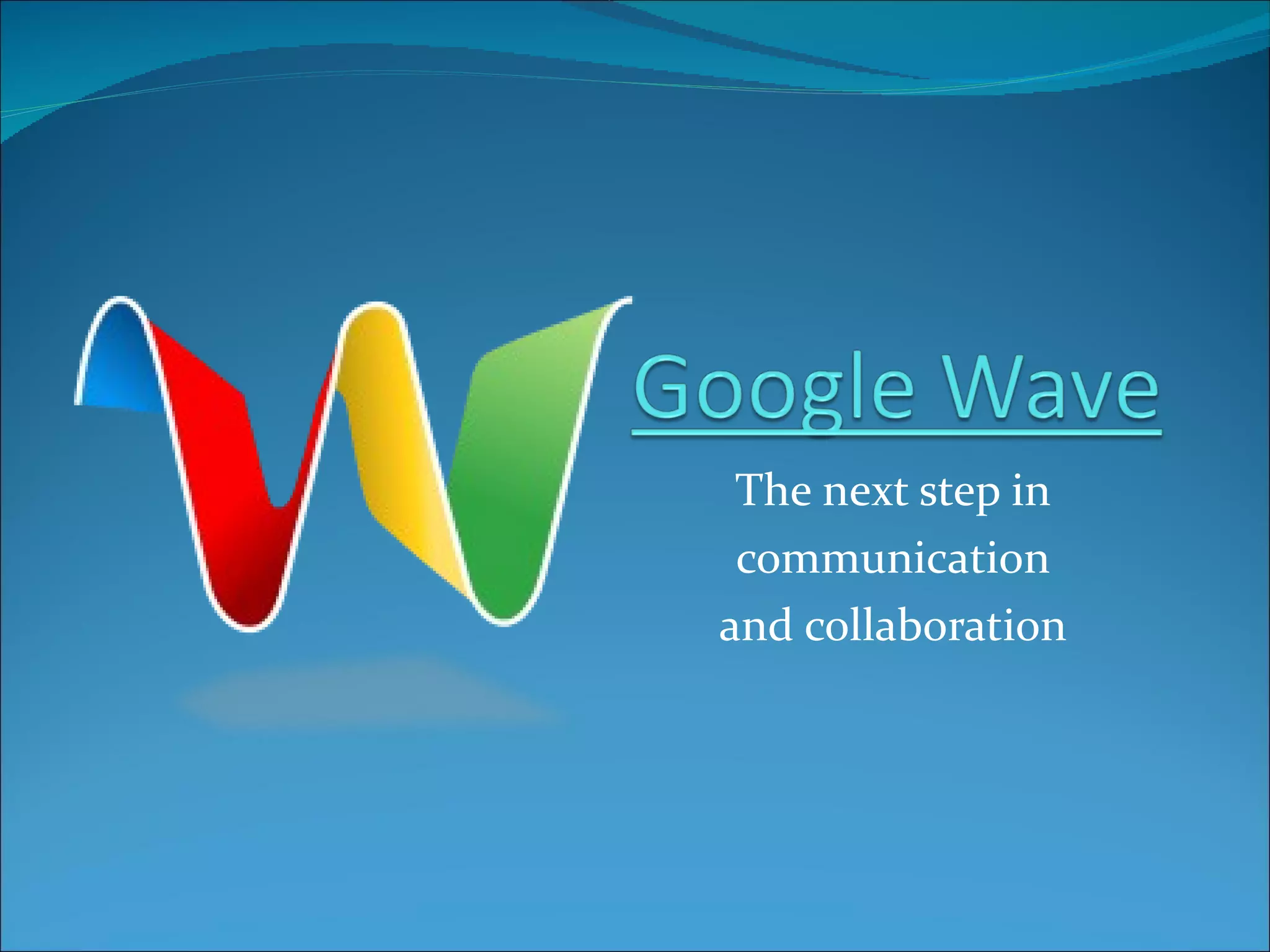 Google Wave is a new online communication tool that allows multiple users to collaboratively edit and discuss documents in real-time. Unlike email where messages are sent back and forth, documents on Google Wave are stored centrally on a server, allowing simultaneous editing. Users can view document histories and add or remove collaborators at any time. Google Wave has potential to impact communication for individuals, businesses, and worldwide by integrating messaging platforms, providing translation features, and allowing borderless collaboration through an open source platform.