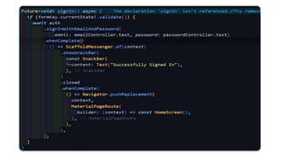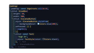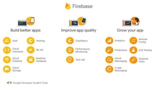 The document provides an overview of Flutter, an open-source UI toolkit developed by Google for building natively compiled applications across mobile, web, and desktop platforms from a single codebase. It highlights Flutter's features such as fast development with hot-reload, ease of learning, extensive widget libraries, and community support. Additionally, it introduces Firebase as a backend service that offers a suite of tools for app development, including real-time databases, user authentication, and cloud storage.