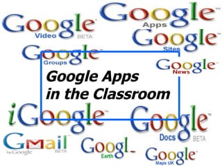 The document outlines how Google Apps can enhance classroom experiences for both students and teachers. It details various applications, including Google Docs, Google Sites, and Google Maps, highlighting their uses for collaboration, organization, and educational purposes. The document emphasizes the tools' potential to improve communication, streamline assignments, and facilitate creative projects in an educational setting.