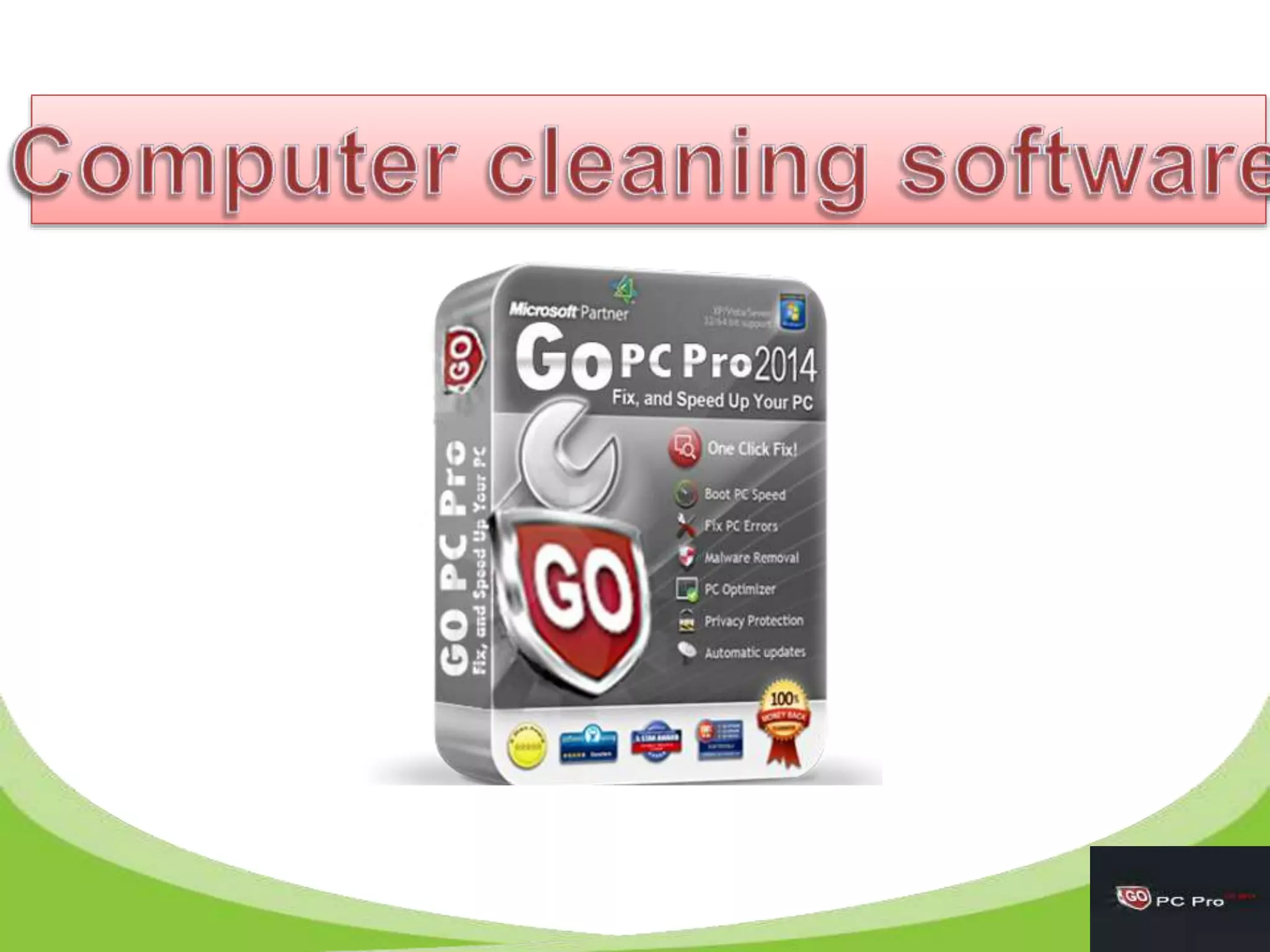 Computer cleaning software cleans issues like browser history, registry files, and data fragments clogging drives. It protects against malware, viruses, and bugs. It can counter anything slowing a computer's speed. Advanced software permanently deletes files and makes activities unrecoverable, fixing privacy issues beyond just cleaning. It targets areas like registry, storage, browsers, and peripherals to locate and remove unnecessary files.