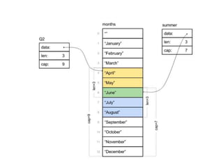 The Go programming language was developed in 2007 at Google by Robert Griesemer, Rob Pike, and Ken Thompson. It is an open source, compiled language that uses garbage collection and has built-in support for concurrency. Go aims to combine the performance and low-level control of compiled languages like C with the simplicity and ease of use of scripting languages. It has C-like syntax but does not support features like classes, inheritance, or generics. Instead, it uses interfaces to define common behaviors across different types.