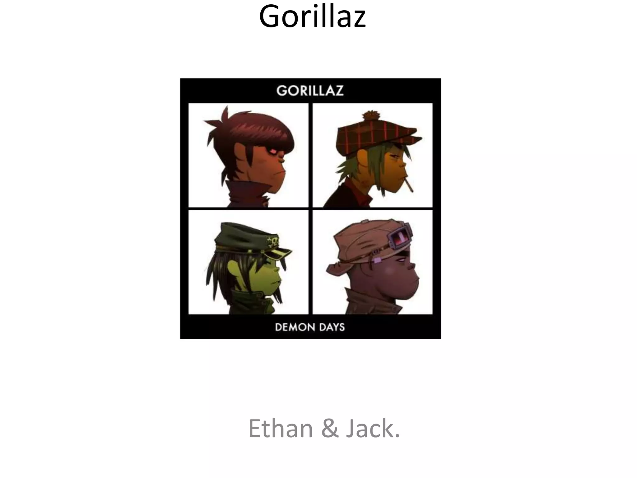 The Gorillaz are an English virtual band formed in 1998 by Damon Albarn and Jamie Hewlett. The band consists of four animated characters - 2D, Noodle, Russell Hobbs, and Murdoc Niccals - who appear in the band's music videos. Jamie Hewlett, known for co-creating the Gorillaz, attended school in Horsham before studying animation. He and Damon Albarn created the Gorillaz as an animated band, a first for the music industry. Their videos use techniques like cel shading and lip syncing to bring the animated characters to life.