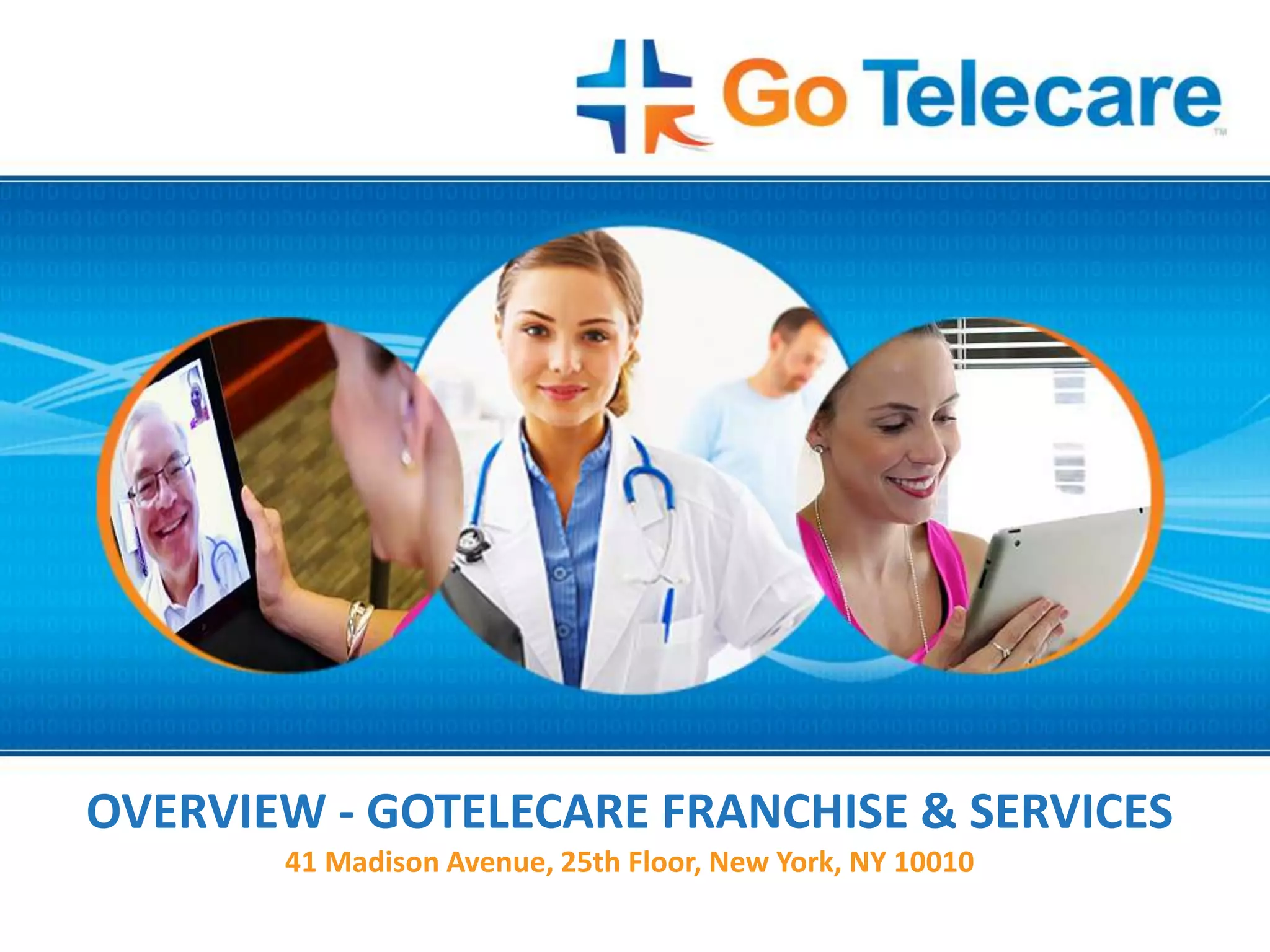 GoTelecare offers a comprehensive telehealth franchise opportunity that includes a HIPAA-compliant technology platform for video consultations, medical billing services, and training for providers and their staff. The franchise aims to improve access to healthcare, reduce costs, and enhance profitability for providers, with a focus on underserved areas and a significant increase in government support for telehealth. Franchisees benefit from low investment costs, residual income from consults and billing, and extensive support without ongoing royalties or marketing fees.
