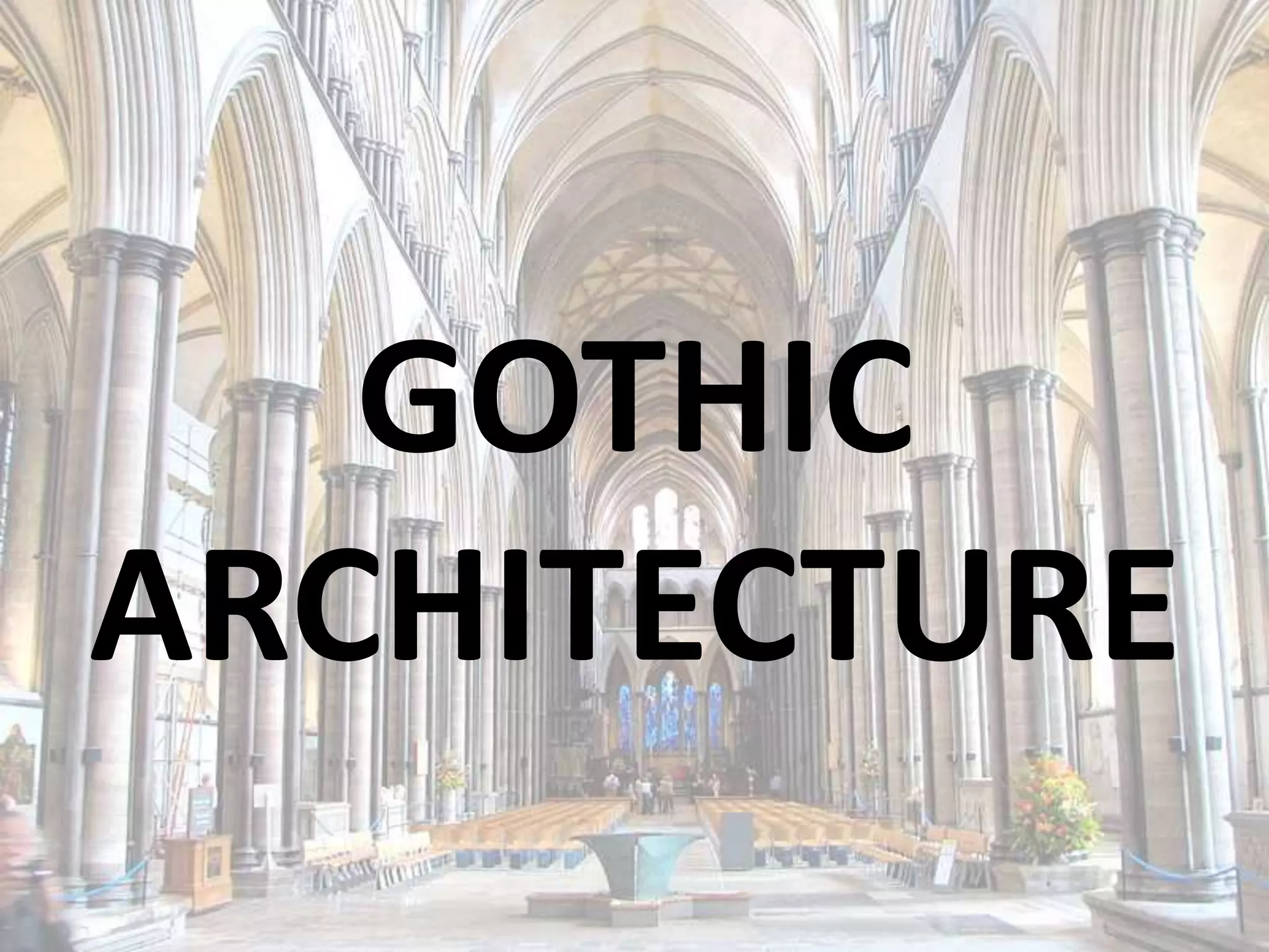 Gothic architecture originated in France in the 12th century and was inspired by Romanesque architecture and Spanish Moorish architecture. It is characterized by pointed arches, ribbed vaulting, flying buttresses, stained glass windows, and ornate sculptures. Gothic architecture fell out of fashion during the Renaissance when it was disparagingly referred to as "Gothic." Examples of Gothic architecture include Notre Dame Cathedral in Paris and St. Patrick's Cathedral in Dublin.
