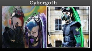 This document provides an overview of the goth subculture, including definitions and origins of the term "goth" and different gothic substyles. It notes that goth began as a component of punk rock and established itself in the 1980s in England. Key aspects of goth fashion are described as black clothing, pale makeup, unusual hairstyles, and body piercings. The document then summarizes several gothic substyles - romantic goth, Victorian goth, old school goth, Japanese goth (J-goth), and cyber goth - highlighting their distinct aesthetics, music preferences, and philosophies.