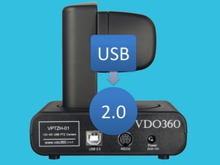 The VDO360 USB Webcam HD is a PTZ camera priced at $1,399, aimed at providing a quality video experience for online meetings with features like remote pan, tilt, and zoom control. It integrates with GoToMeeting, allowing users to manage audio and submit questions during sessions. The device is praised for its affordability and quality, making it a strong choice in the competitive market of webcams.