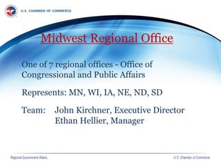 The document outlines the importance of government affairs for chambers of commerce, emphasizing that public policy impacts member businesses and that advocacy is essential for economic growth. It provides a step-by-step guide for developing an effective government affairs program, including identifying key issues, mobilizing members, and maintaining communication with elected officials. The document also addresses common misconceptions about political involvement and outlines strategies for advocacy and grassroots engagement.