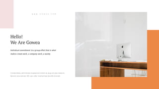The document presents an overview of Gowea, highlighting its commitment to collaborative innovation and scalable e-commerce solutions. It emphasizes the importance of agile frameworks for strategic planning and the expected growth in sales and profits. Additionally, it addresses the company's market positioning and operational strategies to ensure competitive advantage and customer satisfaction.