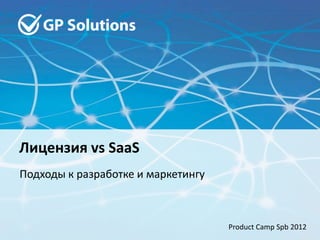Доклад Марии Бондаренко на Product Camp SPB 2012 обсуждает различия между лицензированием программного обеспечения и моделью SaaS. Основные моменты включают сравнение бизнес-моделей, подходов к разработке и маркетингу, а также преимущества и недостатки каждой из моделей как для клиентов, так и для производителей. В заключение подчеркивается возможность сочетания обоих подходов для достижения синергии, требующей адаптации маркетинговых и разработческих стратегий.