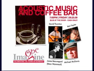 The document lists upcoming events and activities at Glenpres church for the weeks of September including a worship service, book club, open house, banquet, art display, parking notice, Bible studies, sewing group, missions team meeting and regular programming for youth and college groups.