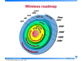 This document provides an overview of General Packet Radio Service (GPRS) presented at a Nokia seminar. It includes: