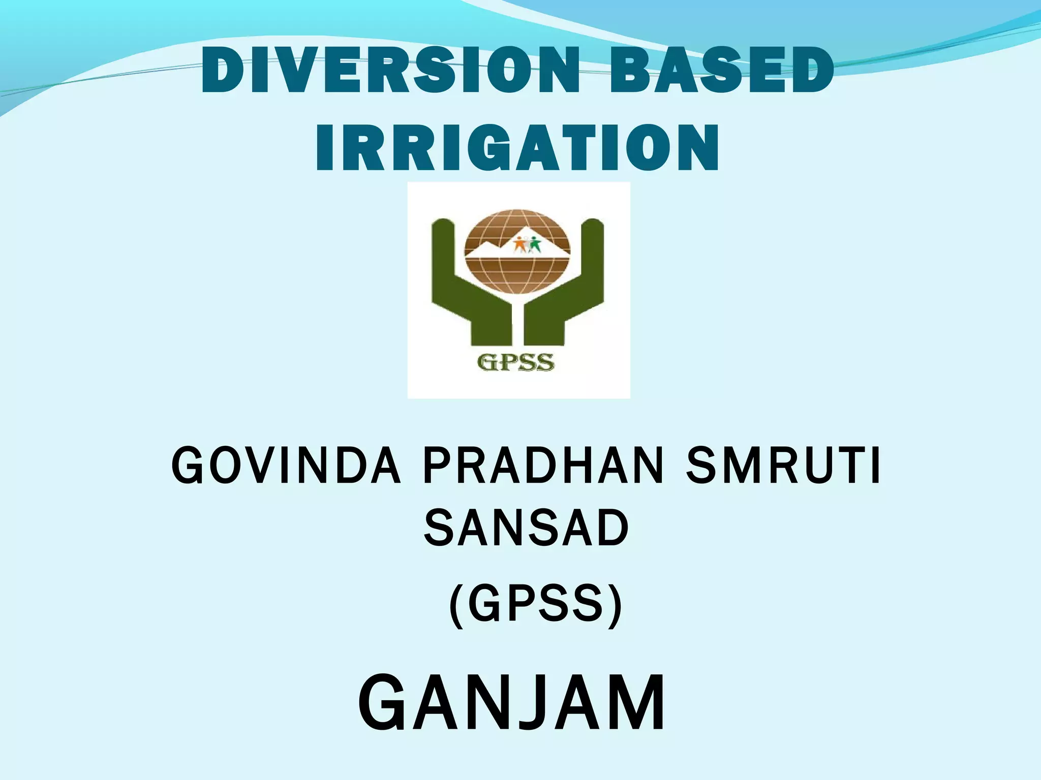 This document outlines a diversion-based irrigation project in several villages in Ganjam, India. It provides details of the pipeline lengths, ayacut (irrigated) areas, and number of households benefited in each village. Key features of the project include irrigation for crops, vegetable cultivation, and drinking water provision. The process involved identification, feasibility studies, village meetings, labor contribution, and formation of village committees. Future plans include using water for additional purposes like drinking and orchards. Some constraints faced were local dynamics and elephant menace in some areas. The project aimed to improve livelihoods and reduce women's workload through reliable water access.