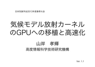 以上を踏まえ、気象・気候モデルのGPUへの適用性の検討と適用に必要な知見の蓄積を目標に、気候モデル放射カーネルのGPUへの移植とその高速化を試みた。