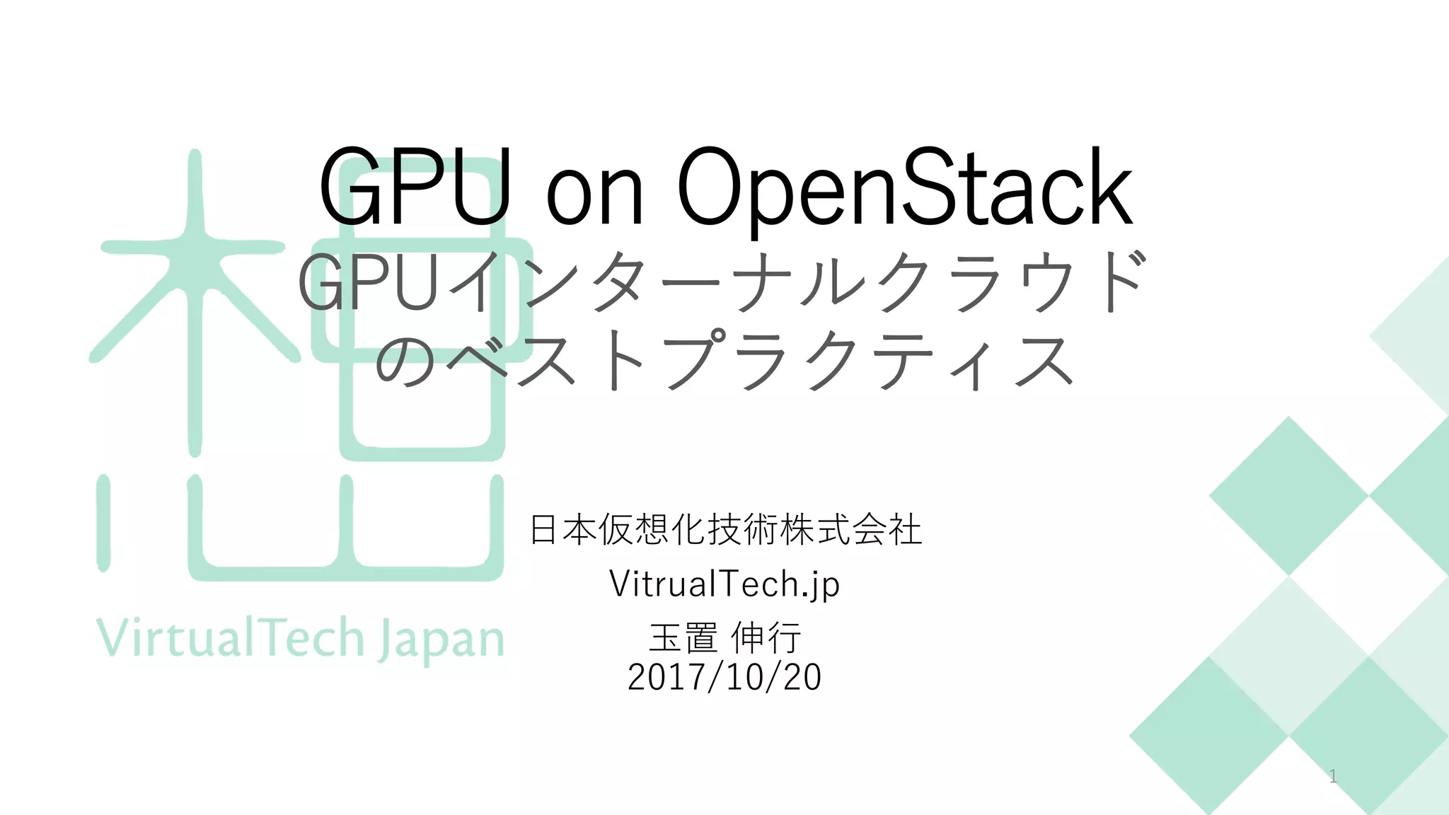 講演タイトル:GPU on OpenStack 〜GPUインターナルクラウドのベストプラクティス (Red Hat Forum 2017 発表資料) 講演者:玉置 伸行 アジェンダ: - GPUインフラについての整理 - GPU on OpenStackとは - 環境構築のステップ