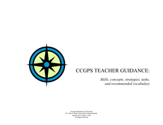 This document provides guidance for teaching the Common Core Georgia Performance Standards for fourth grade reading literary texts. It outlines key skills, concepts, strategies, tasks, and vocabulary for teachers to focus on in helping students comprehend stories, poems, and drama. Specific standards are addressed, such as determining theme, describing characters, and comparing point of view. Sample instructional activities are described that integrate multiple standards. The goal is for students to understand, analyze, and connect to different types of literary texts.