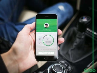 This document summarizes Grab's key competitors and provides personas of potential Grab users. The direct competitors of Grab include Uber, Ryde, and ComfortDelGro for their GrabTaxi service. Two personas are described: Rose, a 24-year-old female bank worker who is new to Singapore and wants easy transportation, and Joe, a 30-year-old self-employed man who values simplicity and good value. Market research and publications from Singapore's Land Transport Authority were used as sources.