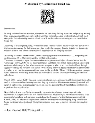 Motivation by CommissionBased Pay
