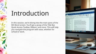 By familiarizing yourselfwith the main parts of the MS Word screen, you're
