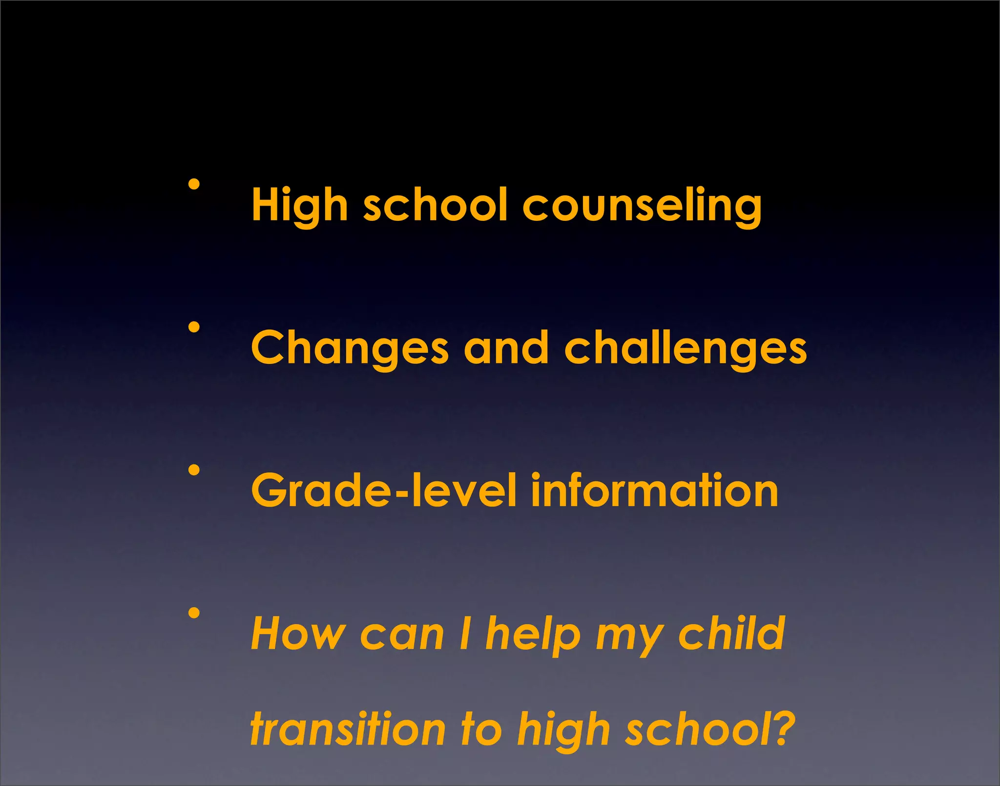 The document discusses the role of high school counselors in helping students with social, emotional, and academic development as they transition to high school, outlines some of the challenges students may face during this time including peer and identity issues, and provides parents with advice on supporting their child during this transition including maintaining open communication and establishing clear expectations.