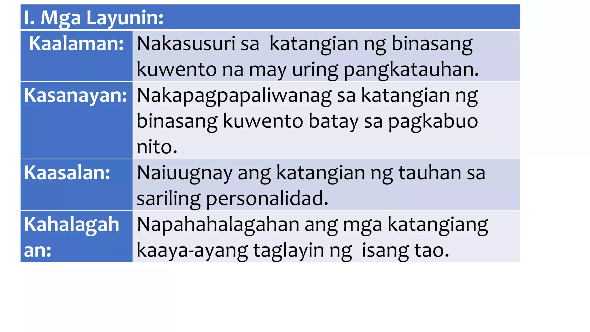 Ang dokumento ay tumatalakay sa pag-aaral ng maikling kuwentong 'Hashnu, ang Manlililok ng Bato,' na nakatuon sa katangian ng tauhan at ang mga layunin sa pagtuturo ng mga ito. Ipinapakita ng kwento ang mga pagsubok at pagbabago ng pangunahing tauhan na si Hashnu, at ang kanyang pagninilay sa iba't ibang kalagayan sa buhay. Hinahamon din ng dokumento ang mga mag-aaral na suriin ang kanilang pagkaunawa sa mga katangian ng bawat tauhan at iugnay ito sa kanilang sariling karanasan.