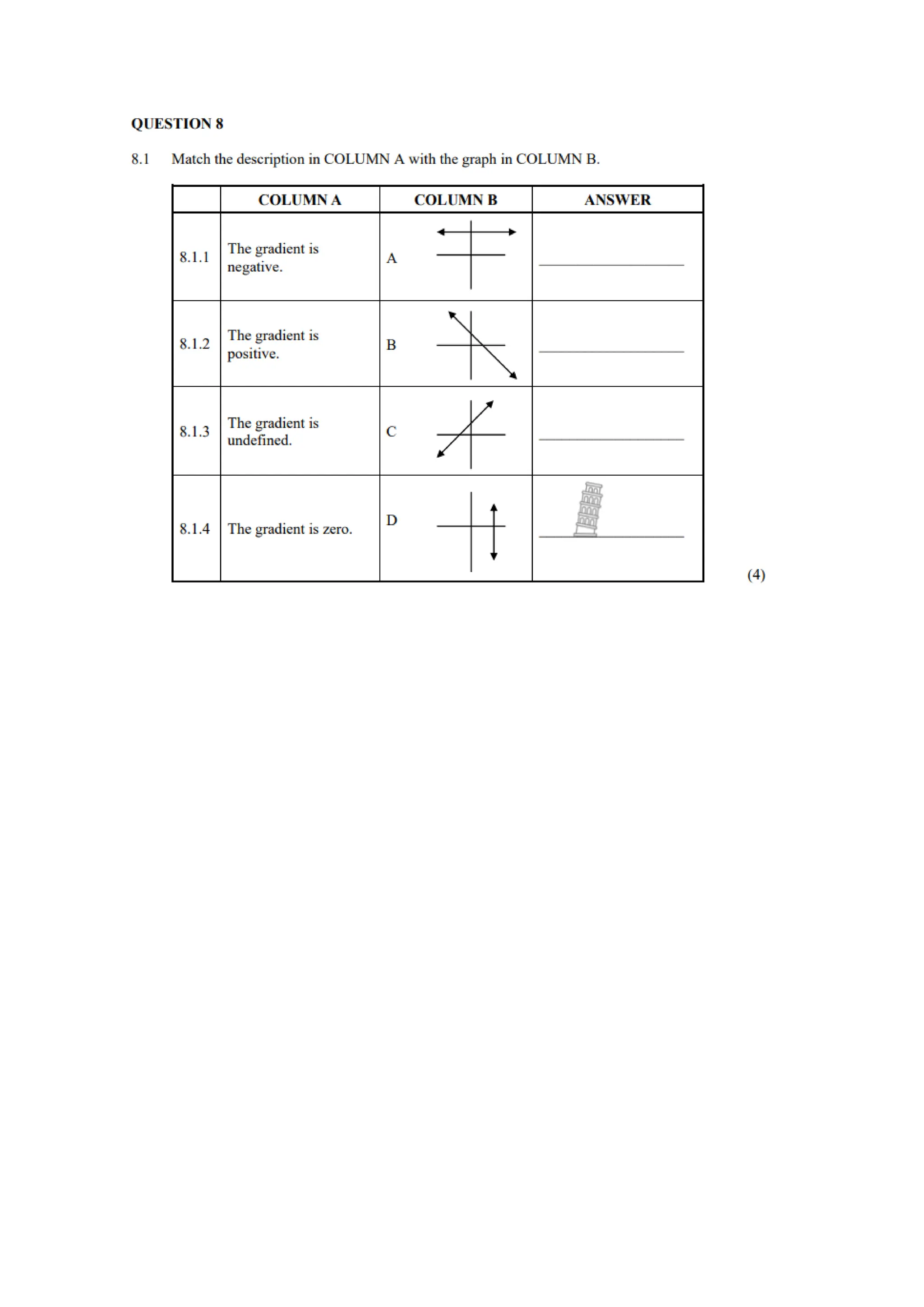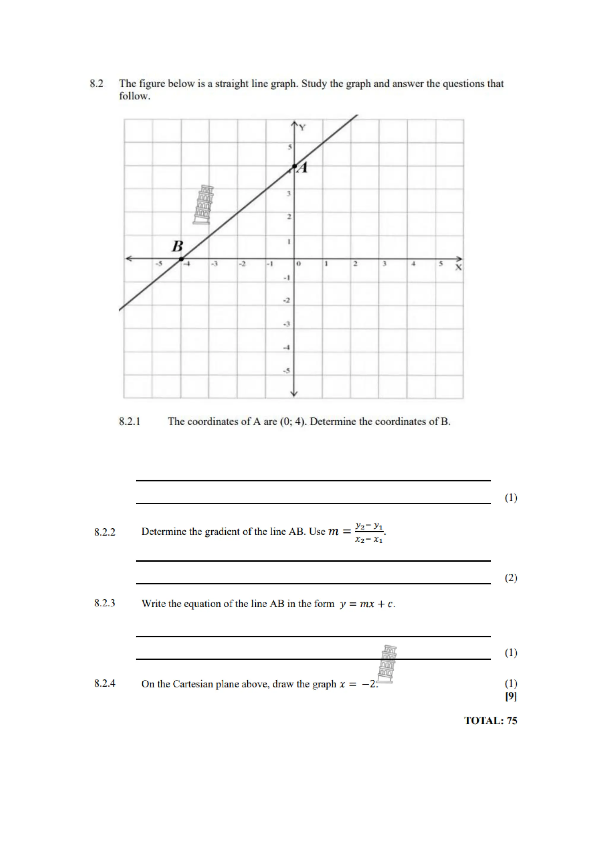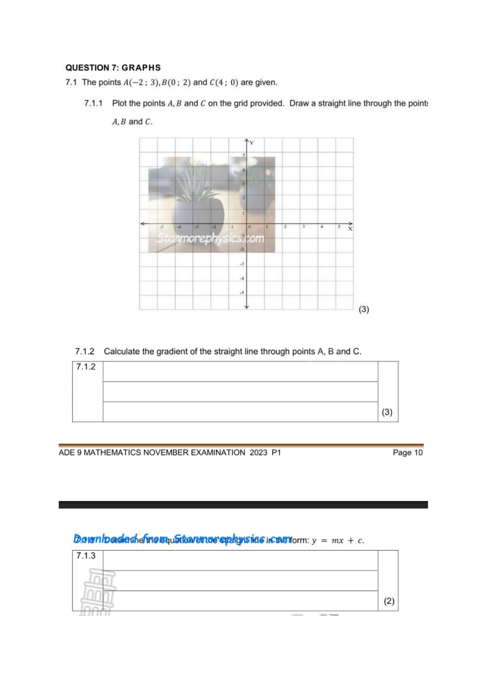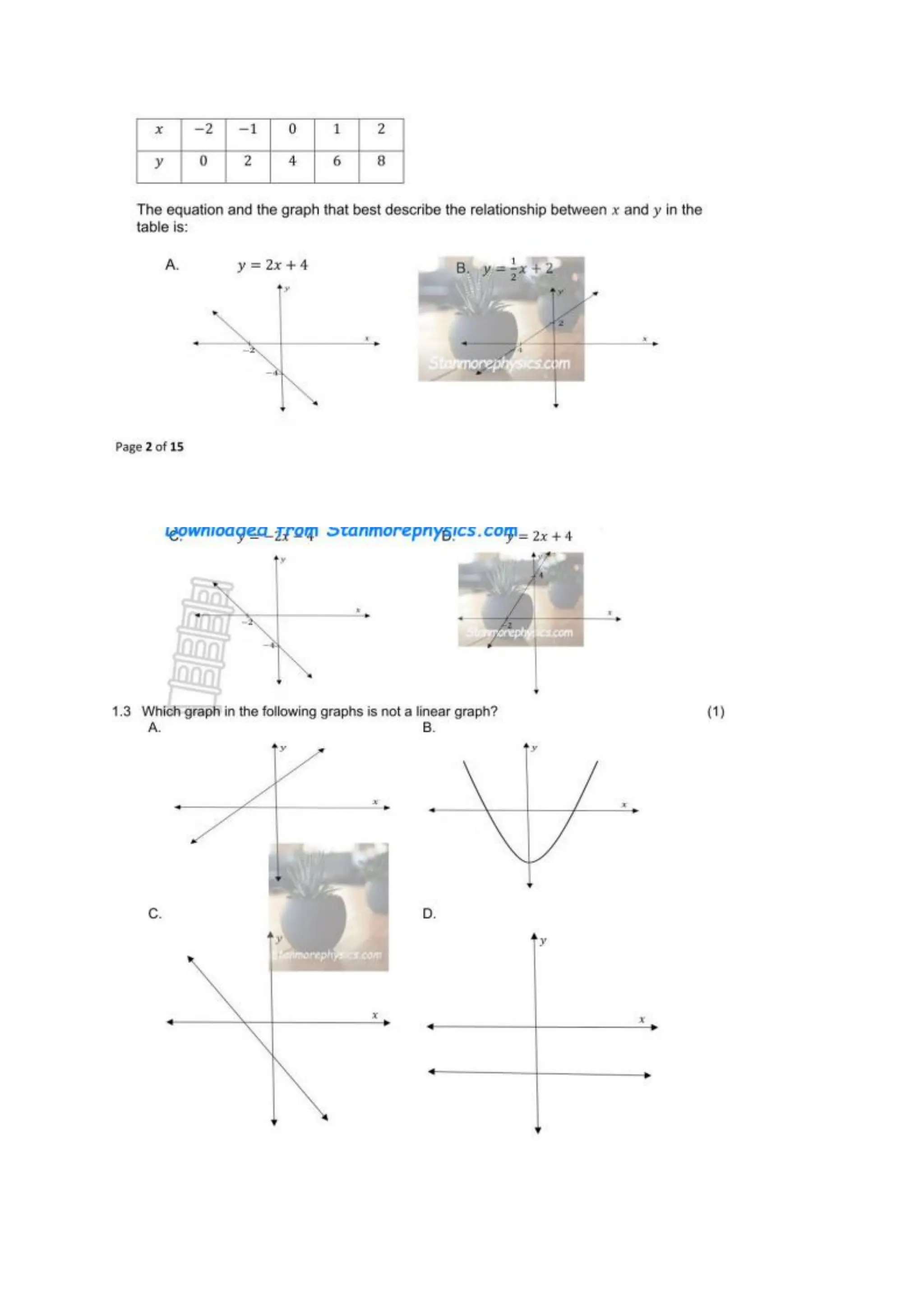 These are questions on Grade 9 Linear Functions. They cover the following concepts: -plotting the linear function -determining the intercepts of a linear function -using dual intercept and point intercept methods to sketch linear function -increasing and decreasing linear functions -determining the gradient of a linear function -review of linear functions -horizontal and vertical lines