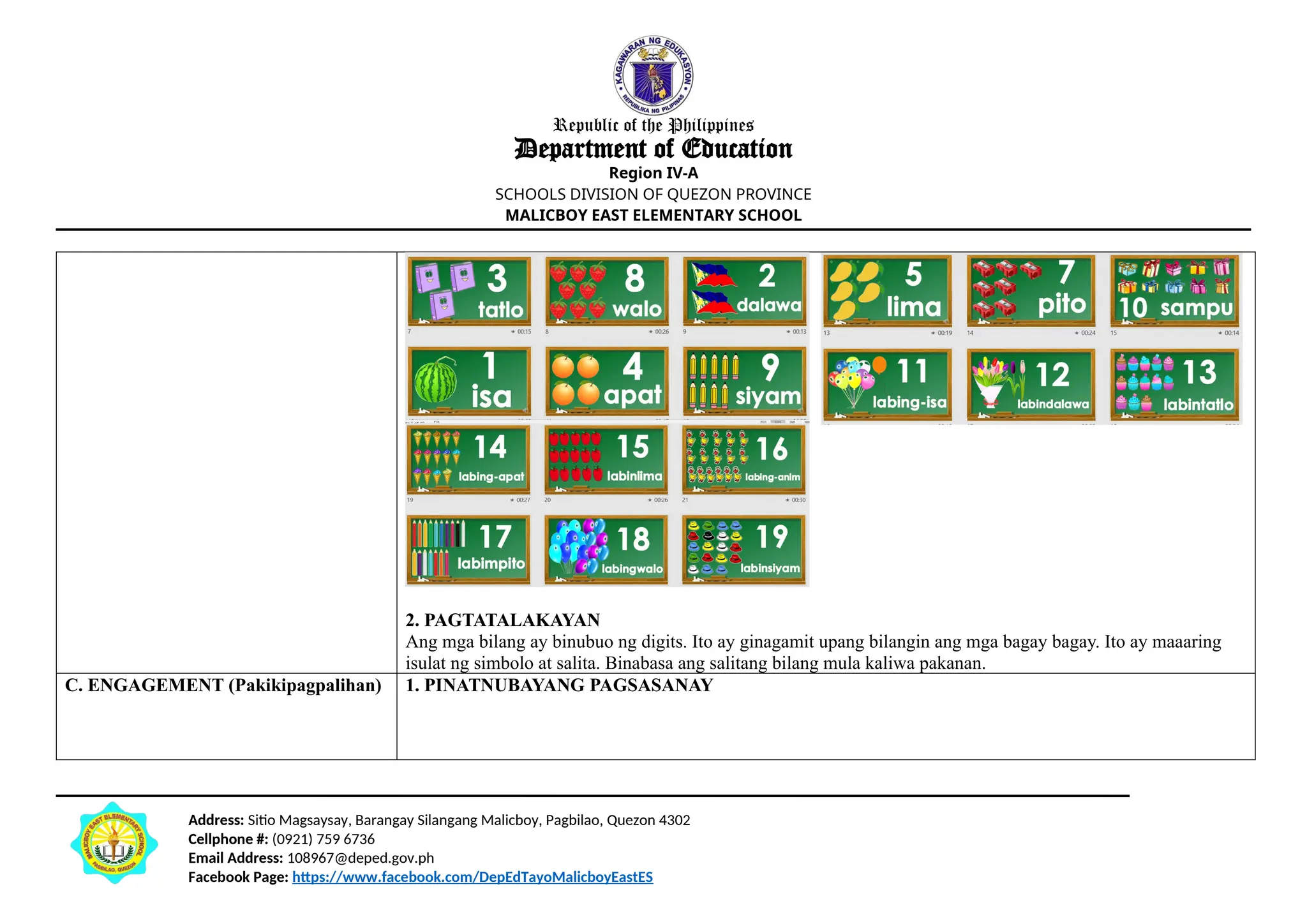 Facebook Page: https://www.facebook.com/DepEdTayoMalicboyEastES