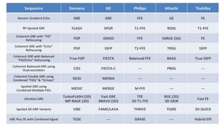 This document provides an overview of MRI gradient echo pulse sequences, types, and applications. It discusses the basics of spatial encoding using slice selection, phase encoding, and frequency encoding gradients. It describes coherent gradient echo sequences which maintain transverse magnetization between excitations, and incoherent sequences which eliminate residual transverse magnetization. Spoiling techniques are discussed which remove signal from residual transverse magnetization to enhance T1 contrast. Applications include angiography, myelography and fast imaging where T1 or proton density contrast is desired.