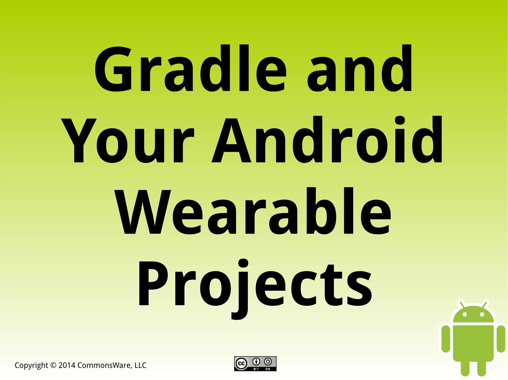 Gradle is a build automation tool that can be used for Android projects. It allows building a single project into multiple APKs for different device types through the use of product flavors. Product flavors allow for customizing each APK variant, such as using different libraries or resources. Gradle's product flavors and build variants allow developers to have a single codebase that can generate multiple APKs targeted at different device types from wearables to phones.