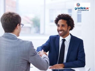 This document introduces GradLink, an online careers site that helps international students educated in the UK find jobs overseas. It provides information on using the GradLink site, advice for selling a UK education abroad, and testimonials from students, universities, and employers praising GradLink's role in connecting qualified graduates with opportunities. The key takeaways are that a UK education is appealing globally if students emphasize skills like English proficiency, but graduates must actively research markets, apply to jobs, and use resources like GradLink to tap opportunities in overseas job markets.