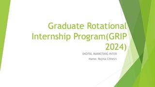 The document outlines a marketing plan for The Sparks Foundation graduate internship program. It proposes leveraging social media, especially Instagram, to promote the 2024 program. Key tactics include posting student reviews and experiences, sharing event highlights daily, and communicating internship opportunities and benefits to attract college students looking for internships. Conducting surveys and interviews of students is also suggested to improve the program. The goal is to help students explore skills and career opportunities through the remote internship program.