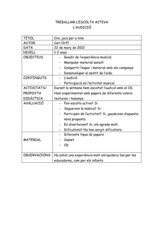 ACTIVITATS/ Durant la setmana hem escoltat l’audició amb el CD.